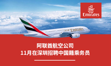 阿联酋航空公司2025年11月在深圳招聘中国籍乘务员