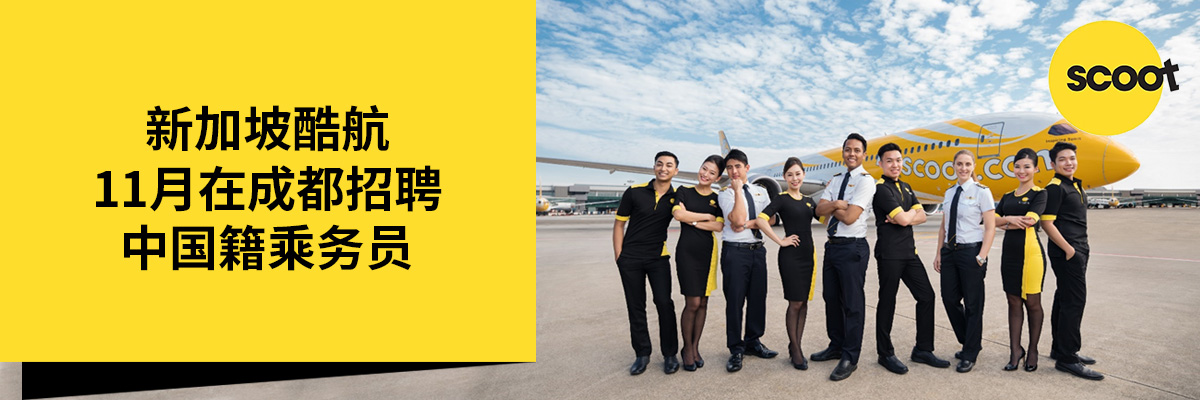 新加坡酷航11月在成都招聘中国籍乘务员